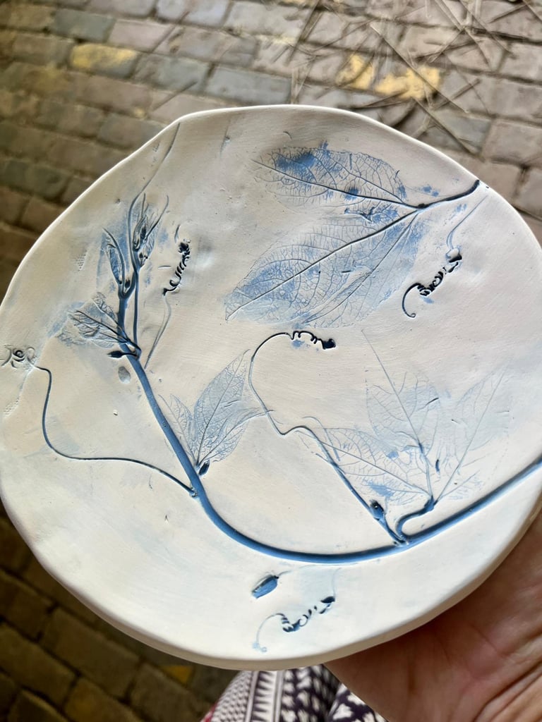 Stamped organic ceramics with natural pigments. 14"